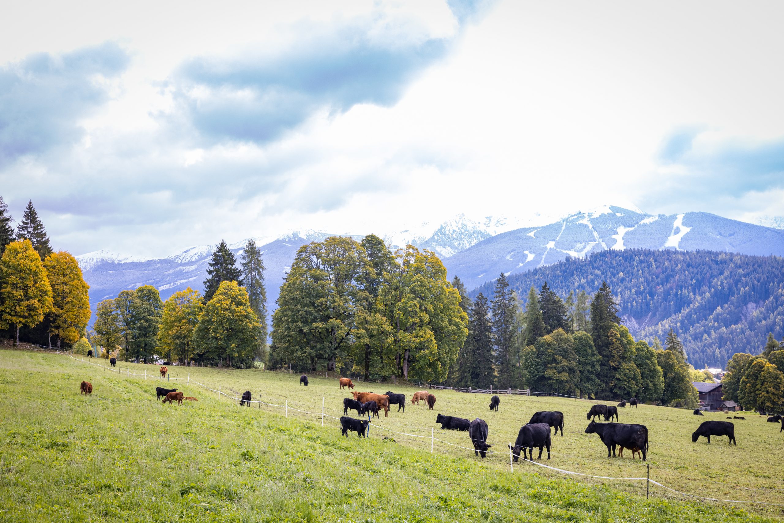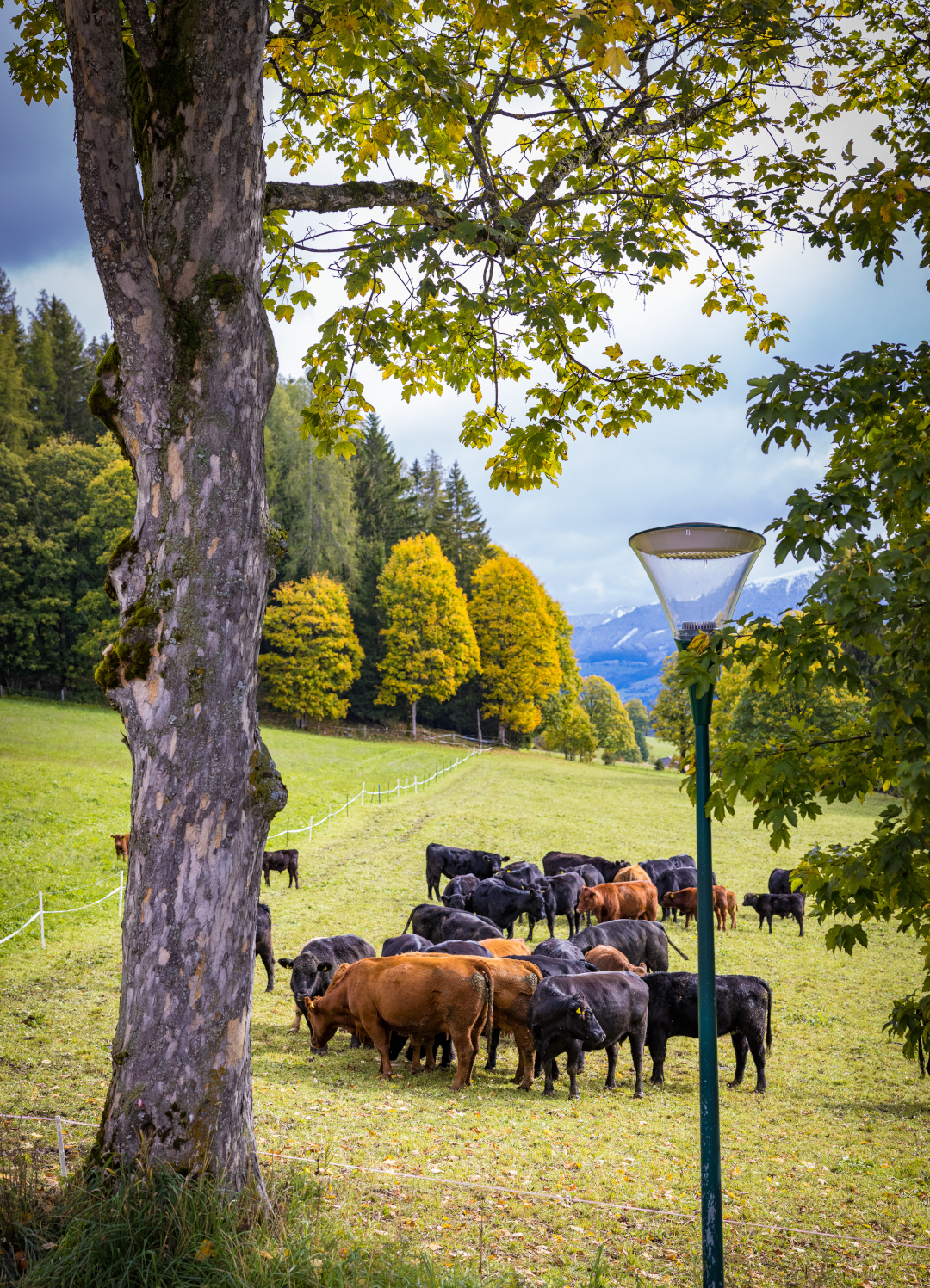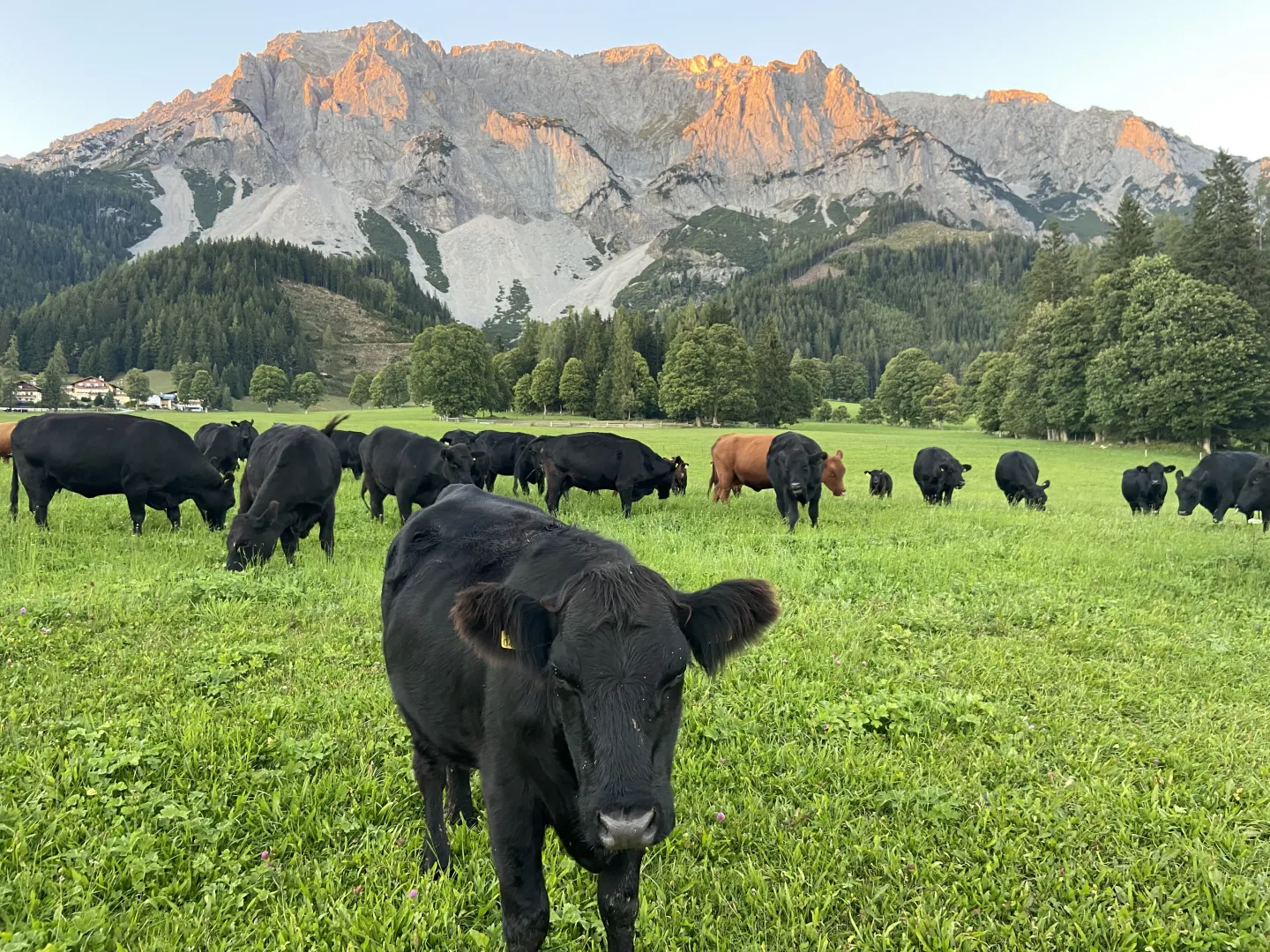 Dies beginnt im Sommer auf unseren Almen am Fuße des Dachsteins. Dort, auf saftigen Wiesen, wachsen sie inmitten der Herde auf und genießen ihre ersten Monate.