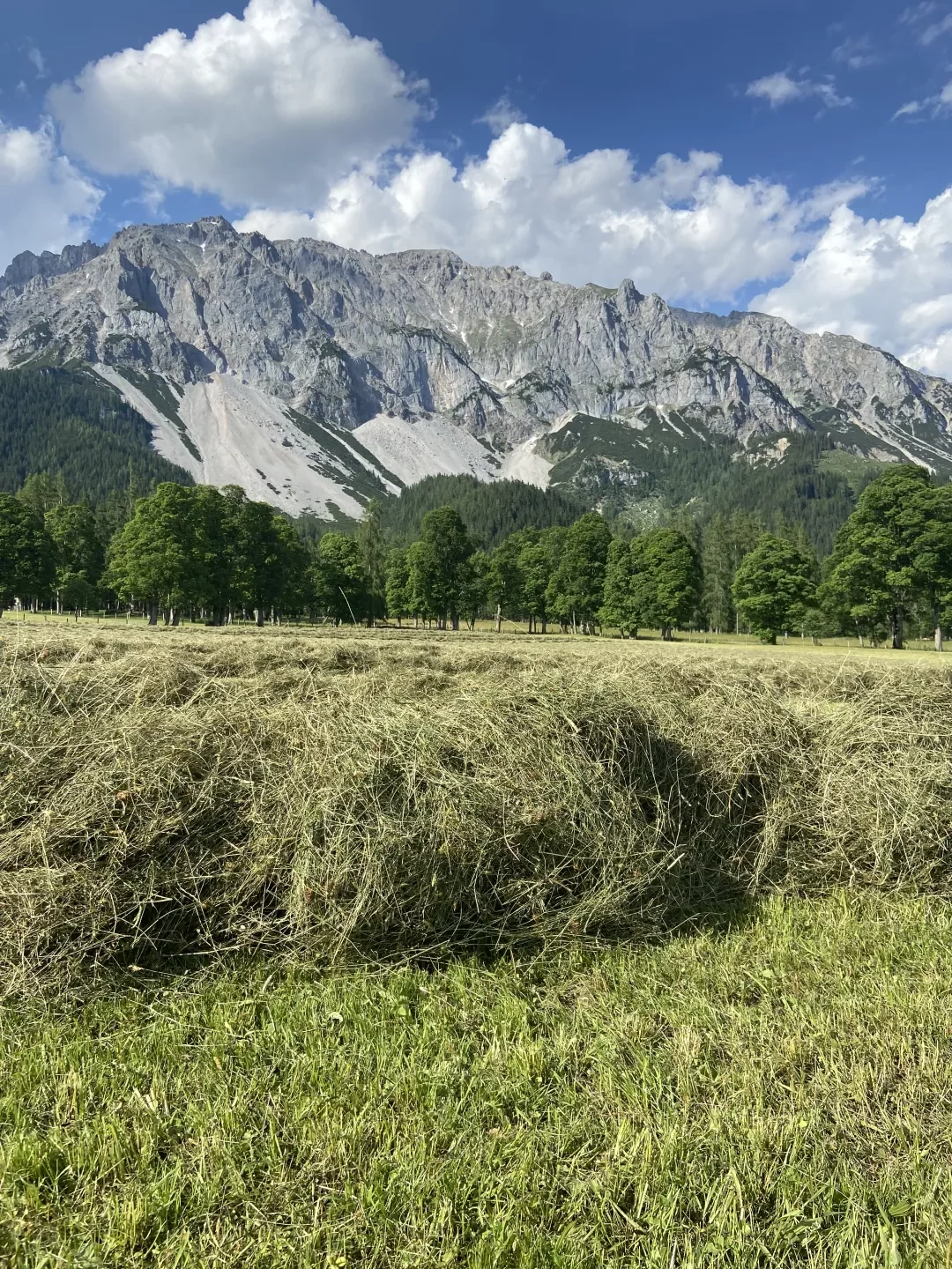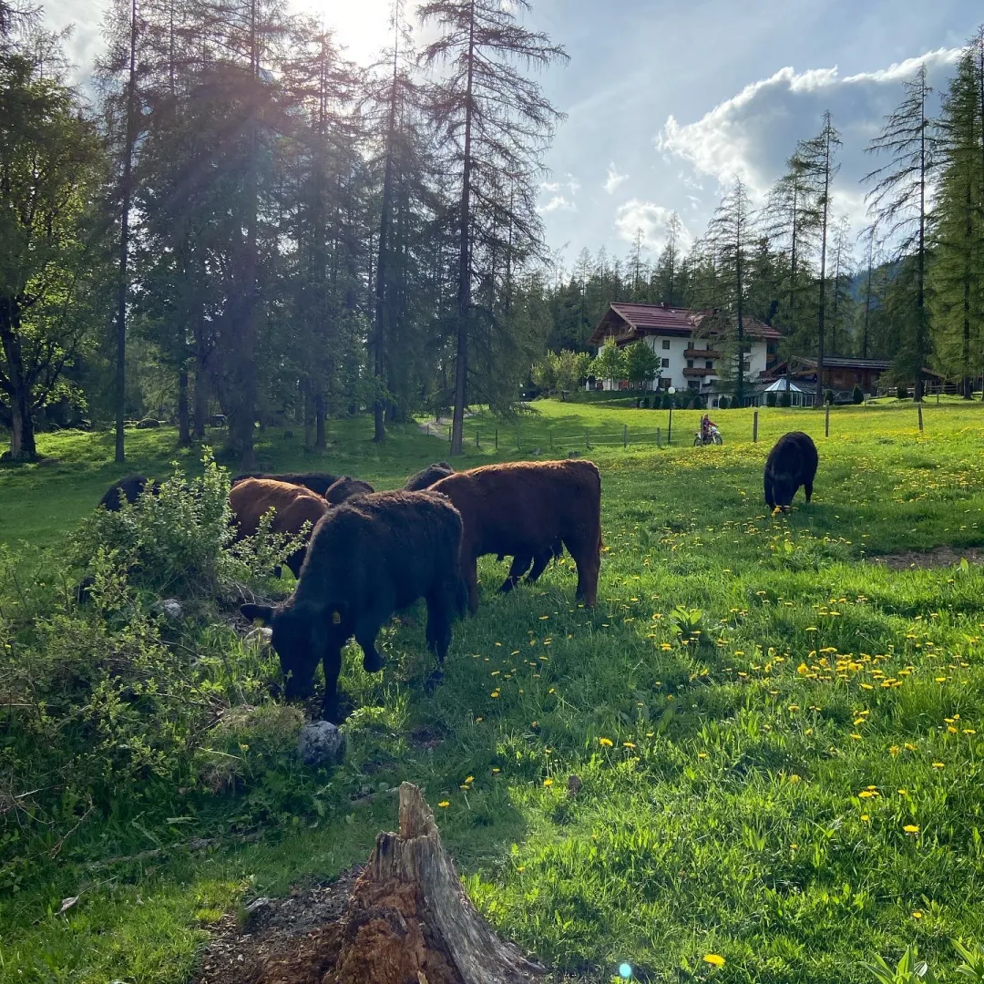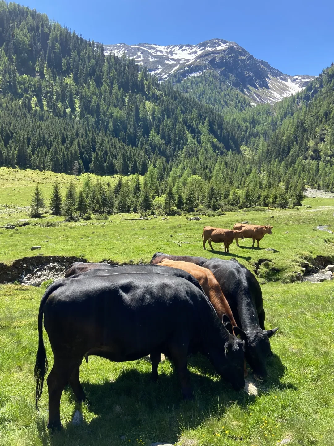 Dies beginnt im Sommer auf unseren Almen am Fuße des Dachsteins. Dort, auf saftigen Wiesen, wachsen sie inmitten der Herde auf und genießen ihre ersten Monate.